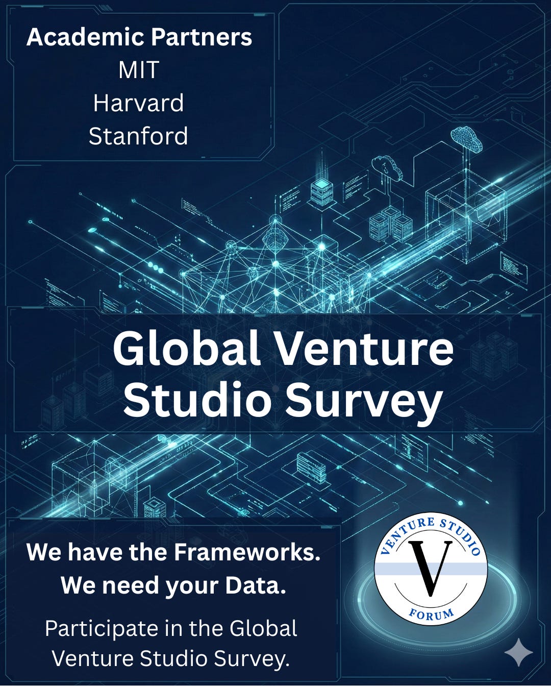 Yesterday we launched the most comprehensive venture studio survey ever undertaken. In collaboration with researchers from MIT, Harvard, and Stanford, and building on the Venture Studio Index frameworks, this survey combines operational data with classification standards to enable rigorous performance analysis across diverse studio strategies.