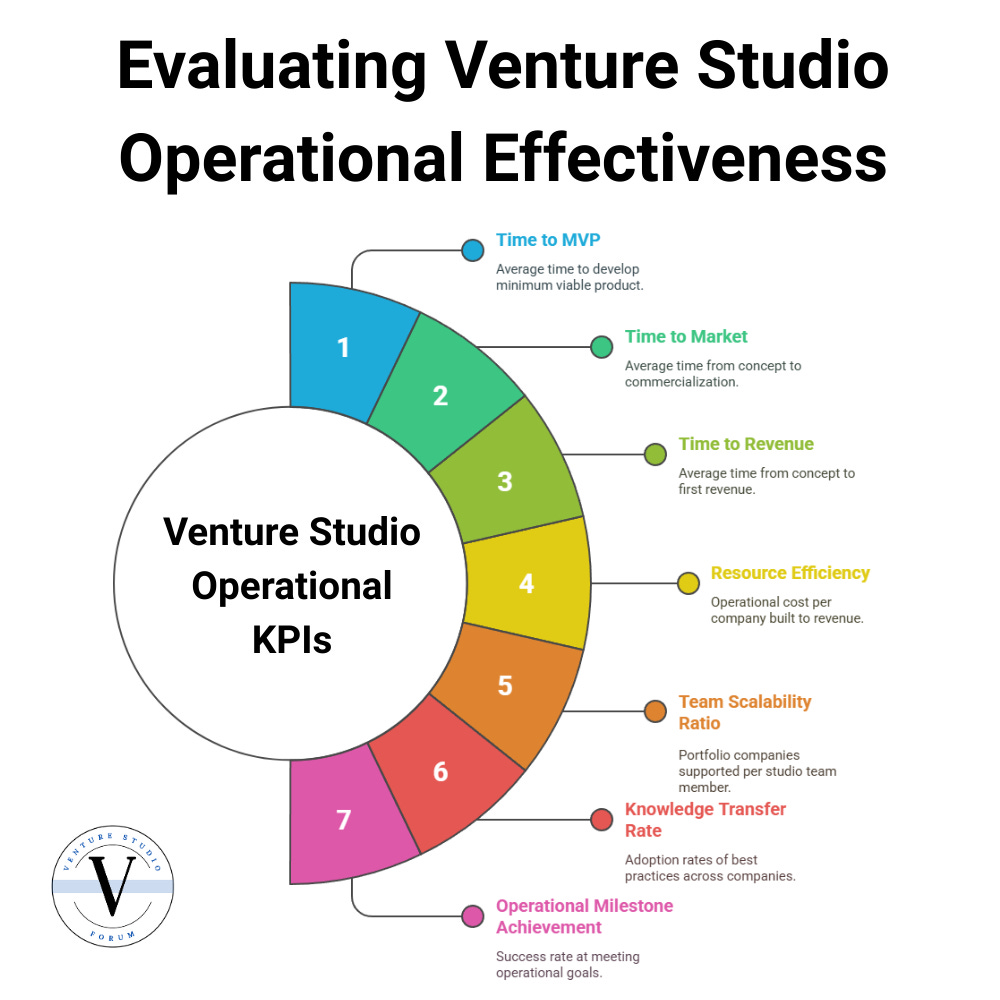 Investors should assess the effectiveness of a venture studio's operator function using the following quantitative and qualitative metrics:
